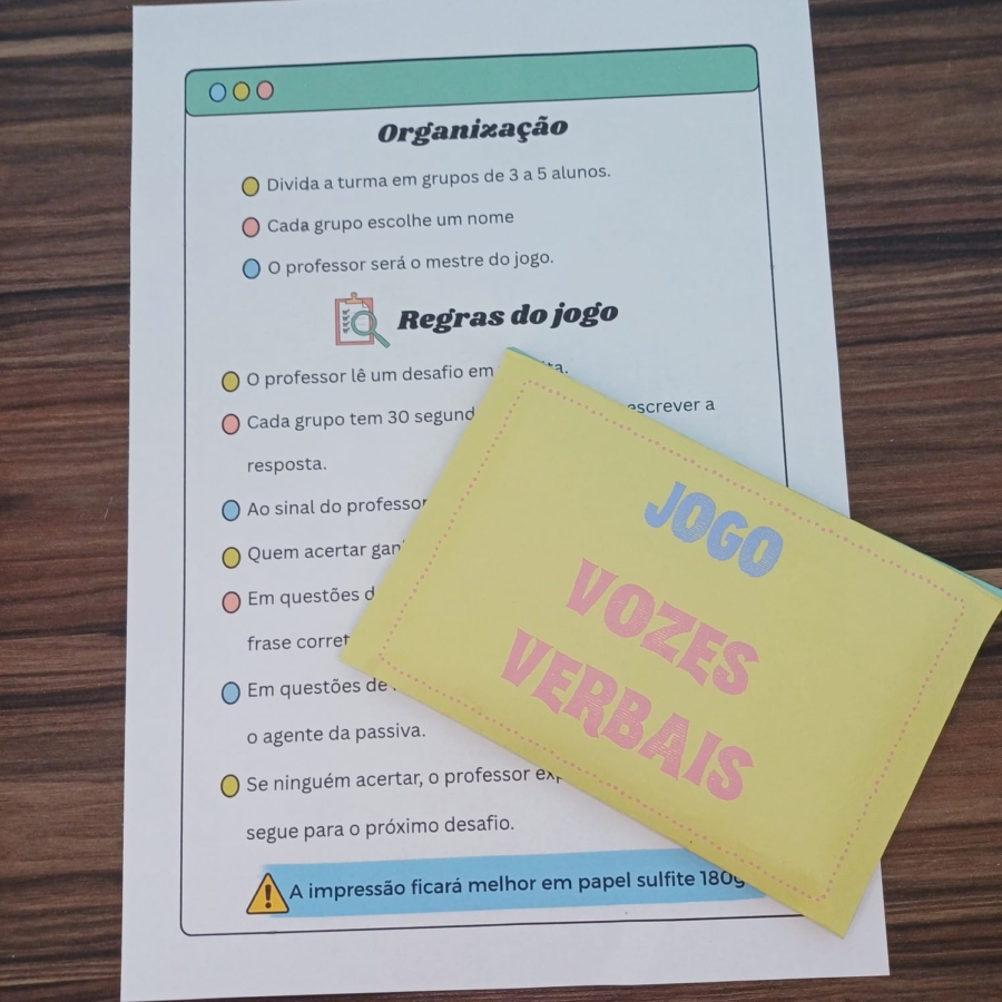 Ideal para revisar, fixar ou avaliar o conteúdo, o Jogo das Vozes Verbais ajuda o aluno a aprender brincando e oferece ao professor uma forma prática e eficiente de trabalhar um tema essencial da gramática. Uma aula mais participativa, divertida e com resultados reais de aprendizagem.