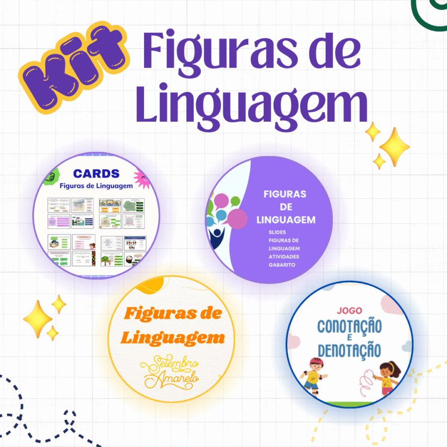 O Kit de Figuras de Linguagem reúne 04 materiais dinâmicos de estudo, cuidadosamente elaborados para ajudar seus alunos a identificar, compreender e aplicar as principais figuras de linguagem de forma prática e divertida.