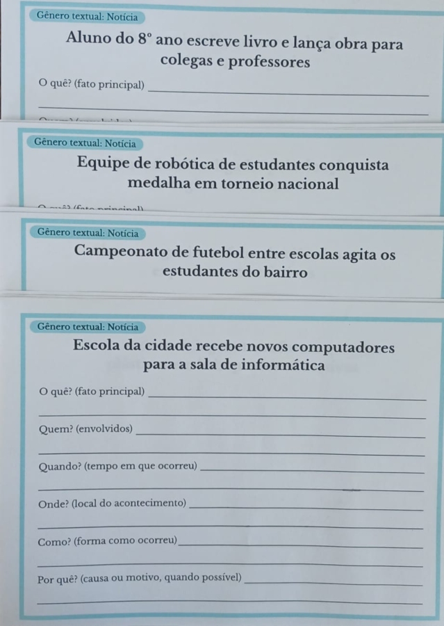 ⭐ 40 fichas compostas por: manchete e os elementos do gênero