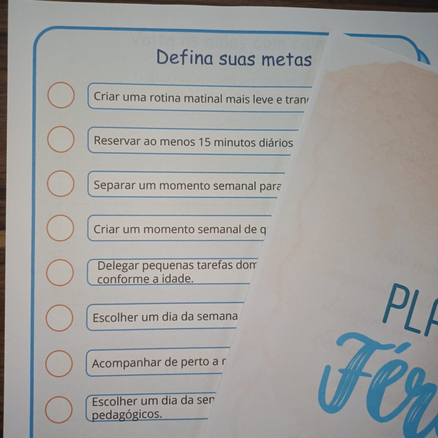 O Planner de Férias para Professores foi criado para ajudar você a desacelerar, organizar ideias e se preparar com tranquilidade para o próximo período letivo, sem pressão e sem sobrecarga.